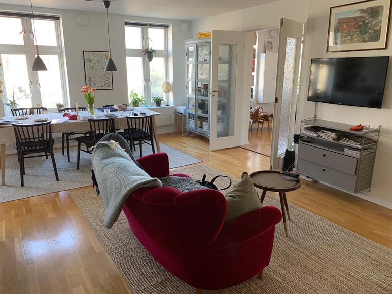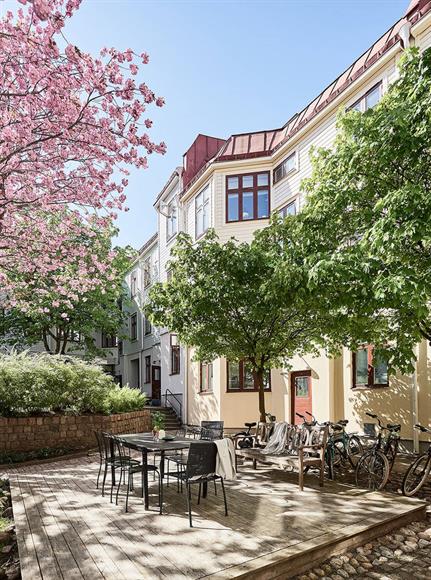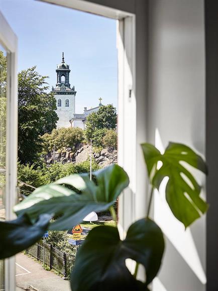 Stor och ljus hörntrea med öppen och social planlösning, högst upp i ett av Majornas vackraste landshövdingehus från tidigt 1900-tal. Vardagsrummet och köket är i enhet i en öppen planlösning med fantastiskt ljusinsläpp från tre höga fönster. Här finns det gott om plats för umgänge och stora middagsbjudningar. Det ena rummet är ett stort hörnrum (i dag används det som vardagsrum, kan också användas som sovrum) med fönster i två väderstreck; från burspråket har man vacker utsikt över en grönskande park och Karl Johans kyrkas siluett. Sovrummet är rymligt och med plats för stor dubbelsäng och garderober. Läget är perfekt med kaféer, restauranger, skolor, förskolor, butiker och stora mataffärer inom ett par stenkast. Promenadavstånd till Linnégatan och till Slottskogen. Med 9:ans spårvagn är du snabbt nere på Centralstationen (8-9 minuter) och med 11:ans spårvagn når du Saltholmen och båtarna till den södra skärgårdens öar.