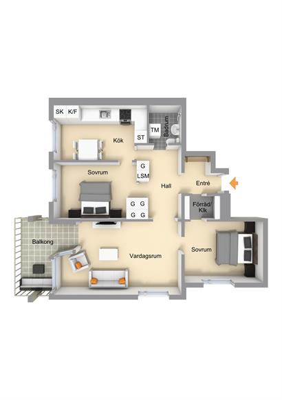 • 75 m2 3 rum