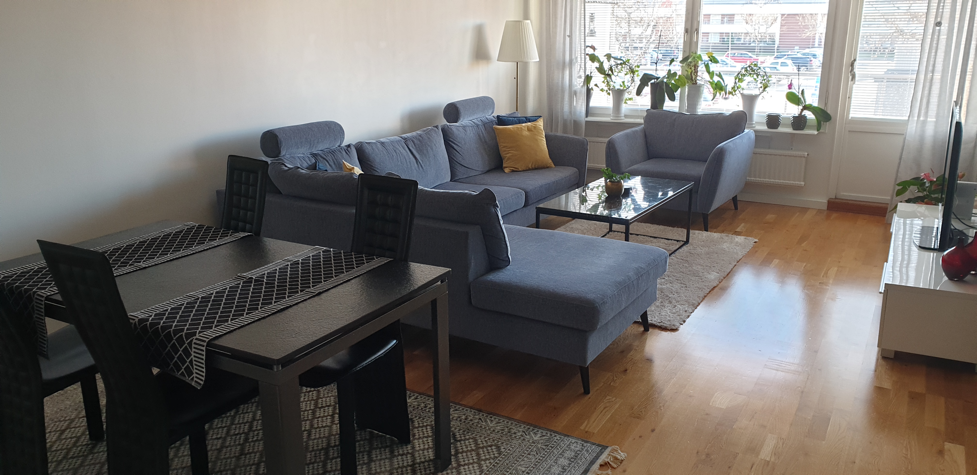 Vi hyr ut en rymlig och fräsch trea i ett år (fom 1a juli 2020) med möjlighet till ett års förlängning. Lägenheten är delvis möblerad. I hyran ingår bredband, värme och varmvatten. El tillkommer beroende på förbrukning. Föreningen har även ett fullrustat gym som kan nyttjas till en kostnad om 800 kr/år och lägenhet.