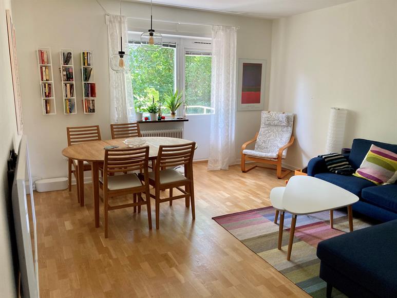 Välplanerad och fullt utrustad 3:a i mysiga Gröndal. Här bor du nära stora grönområden och sjöglimten från lägenheten vitnar om närheten till vattnet. Stockholms innerstad ligger endast ca 10-15 min bort med bra kommunikationer vilket gör läget unikt. Parkeringsplats finns mot en extra avgift.Gröndal is close to a lot of green areas and the water. Its also close to the city center with good communications. With tvärbana, which is 1 minute from the apartment, you reach the metro station Liljeholmen on two stops and T-centralen in 16' in total. The closest Pendeltåg station is Årstaberg and it takes 9' there. There is a parkingspace available with extra fee.