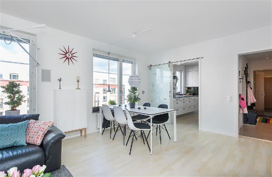 Trea i Hammarby Sjöstad. Mycket nära till tvärbana, restauranger, livsmedelsbutik och friluftsområden. Väldigt trevliga grannar och överlag ett trevligt och funktionellt boende.Garageplats finns (mot tilläggsavgift) i huset liksom MC-plats och källarförråd.Vi hyr ut pga studier i annan stad och har för avsikt att hyra ut under längre tid. Föreningen ger tillstånd för 6 månader i taget med förnyelse i upp till två år. Vi önskar ha en god relation mer er som hyr och är flexibla och lösningsorienterade.Vi ber om överseende för att bilderna är gamla och möblering etc. ser annorlunda ut idag. Detta pga att vi har lite flyttkaos och små barn som springer runt.