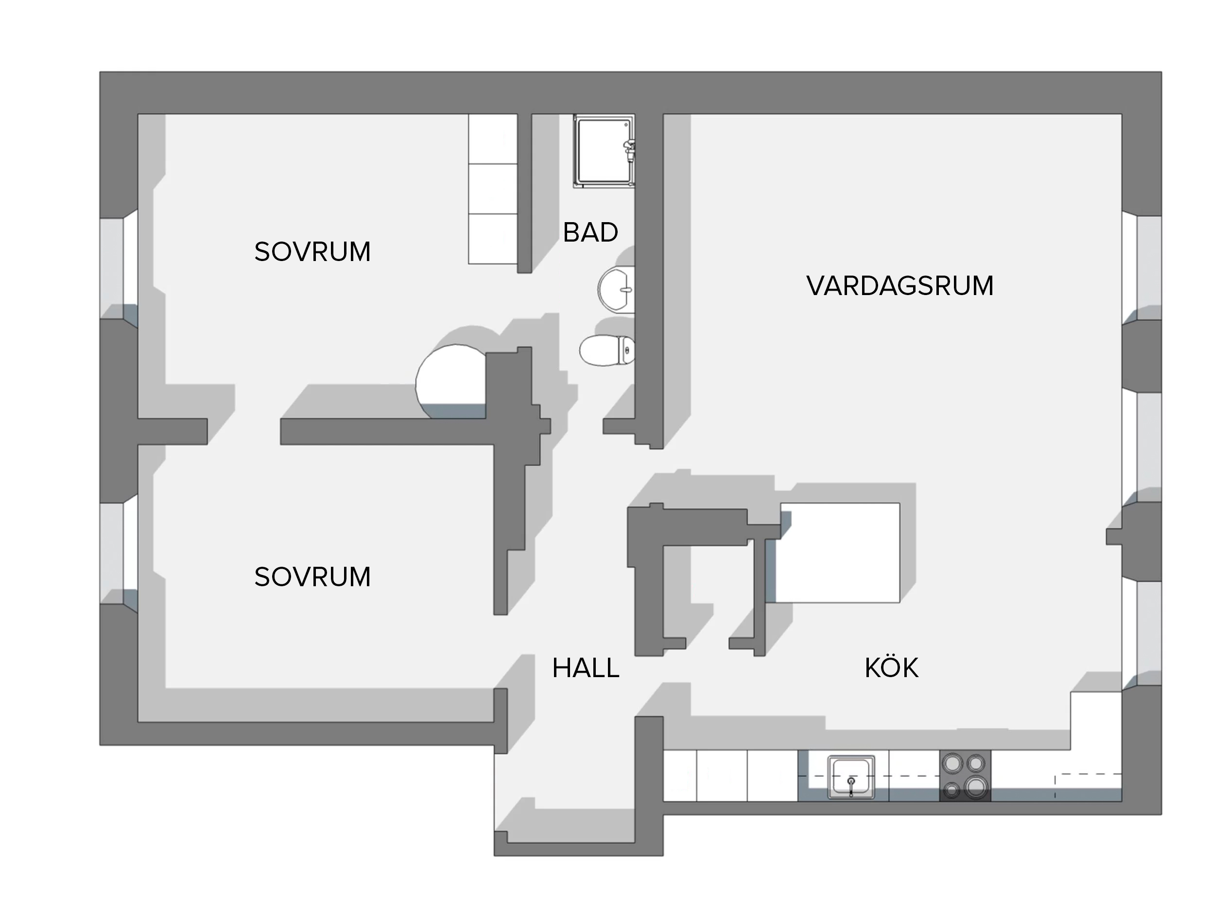 Ingår i hyran: El, bredband, tv