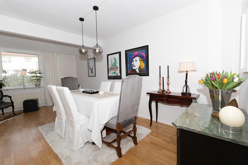 Ett fint och nyrenoverat radhus i två plan uthyres. Bostaden ligger i ett mycket lugnt barnvänligt område. Festlokal/samfällighetslokal finns i området och det finns möjlighet att låna trädgårdsredskap i föreningen. I området finns flera fina lekparker och en fotbollsplan. Huset ligger naturnära med bra kommunikationer. (3 minuters promenadavstånd till buss och ca 7 minuters promenadavstånd till pendeltåget, Norrvikens Station.) På förfrågan finns möjlighet att hyra plats i parkeringsgarage och extra kallförråd.)