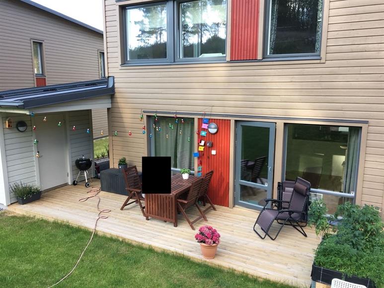 Mysig tvåplansvilla med uteplats i bostadrättsform. Belägen i ett lugnt och barnvänligt område med skog bakom knutet. Närhet till förskolor, lekplatser, fotbollsplan och en skola. 5 minuters gångavstånd till bushållplats och ca 10 minuters köravstånd till pendeltågsstation. Minilivs kommer att finnas nära till hösten.I huset finns 3 sovrum, 2 badrum varav ett med badkar, mysigt vardagsrum med utsikten mot skogen samt välutrustat kök. Det finns en klädkammare och ett förråd inne i huset. Tvättstuga med grovingång är utrustad med tvättmaskin och torkskåp. 2 parkeringsplatser varav en under carport och ett uteförråd. Altan med utemöbler.