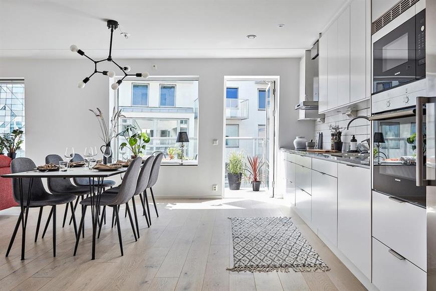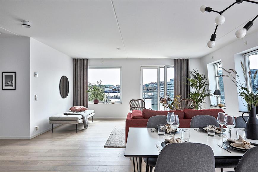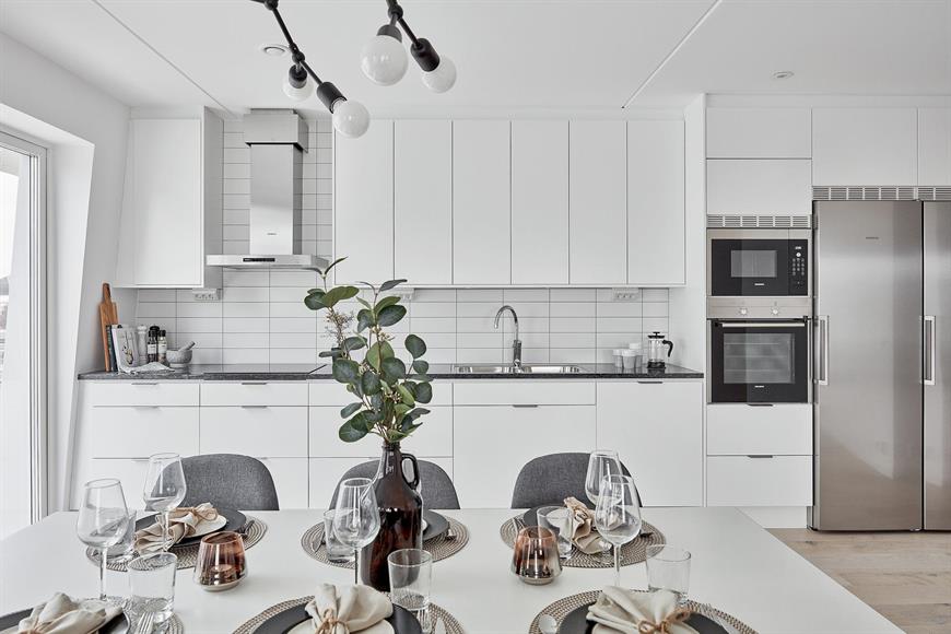 LINDHOLMSKAJEN – NYPRODUKTION Belägen på kajkanten i toppvåningen 4/4 erbjuder denna ljusa bostad en häpnadsväckande utsikt över älven och skapar ett starkt intryck av att havet är precis utanför fönstret. Området växer så det knakar. Lindholmskajen är den första Svanmärkta miljövänlig bostadsförening i Sverige och med fasad som lutar 5 grader ger extra ljusinsläpp till lägenheten. Bostadens generösa takhöjd på 3-4m och stora fönsterpartier från tre väderstreck skapar ett härligt ljusinsläpp i samtliga rum och enastående utsikt över kajkanten. Lägenheten har en öppen planlösning med takhöjd 4m. Maskinparken erbjuder ugn och mikro i högskåp, tvätt&tork, helintegrerad diskmaskin och induktionshäll. Kyl och frys är energiklassade med A++ och den vägghängda fläktkåpan utrustad med kolfilter Clean Air. Det som ingår är värme, 100Mbits internet, TV utbud lagom 42 kanaler, bredbanstelefoni. Vidare finner man fyra ljusa och rymliga sovrum, samtliga med flertal garderober. Två balkonger! Parkering tillgänglig.OmgivningLäget för Lindholmshamnen kunde knappast vara bättre. Direkt öster om Lindholmen ligger Lundbystrand där det finns träningscenter, sporthallar, restauranger och parkeringshus. Granne med området hittas även Lindholmen Science Park med som med sina 20 000 arbetstillfällen är ett världsledande centrum för forskning och utveckling. På Lindholmen finns även campus Lindholmen med sina 7000 studenter samt flera gymnasieskolor. Från områdets busshållplats går flertalet linjer som tar dig till centralstationen på mindre än 10 minuter och dessutom trafikerar Älvsnabben, som är gratis under arbetstider, området för den som föredrar att ta båten till innerstan på 6 minuter. Kommun: Göteborg Gemensamma utrymmenI källarplanet kommer det finnas lägenhetsförråd, gemensamt fastighetsförråd, städrum, cykelförvaring, barnvagns- och rullstolsförråd samt miljörum med sopsortering. LINDHOLMSKAJEN – NEW APARTMENTLocated on the riverside at top floor 4 of 4. This bright residence offers an amazing view of the river and creates a strong impression that the ocean is just outside the window. The area is booming! Lindholmskajen is the first environmental housing in Sweden. A 5 degrees leaning walls gives extra light to the apartment. The house's generous ceiling height of 3-4m and large window sections facing East, West, South gives beautiful light in all the rooms and an outstanding view of the quayside. The apartment has an open floor plan with a ceiling height of 4m. The equipment included are oven and microwave in high cabinet, washer & dryer, fully integrated dishwasher and induction hob. Fridge and freezer are energy-class with A ++ and the wall-mounted fan cover equipped with Clean Air carbon filter. What is included are heat, 100Mbits internet, TV lagom 42 channels, IP phone access.There are 4 bright and spacious bedrooms, all with several wardrobes. Two balconies! Parking available.SurroundingsThe location of Lindholmen harbour could hardly be better. Directly to the east of Lindholmen is Lund bustling stripe where there are training centers, gymnasiums, restaurants and parking garages. Next door to the area is also found Lindholmen Science Park with which with its 20 000 jobs is a world-leading centre for research and Development. Lindholmen also has campus Lindholmen with 7000 students and several secondary schools. From the area's bus stop there are several lines that take you to the central station in less than 10 minutes and also traffic Älvsnabben, which is free during working hours, the area for those who prefer to take the boat to the inner city in 6 minutes. In the basement, there will be apartment stores, communal property stores, cleaning room, bicycle storage, pram and environment room with garbage sorting.