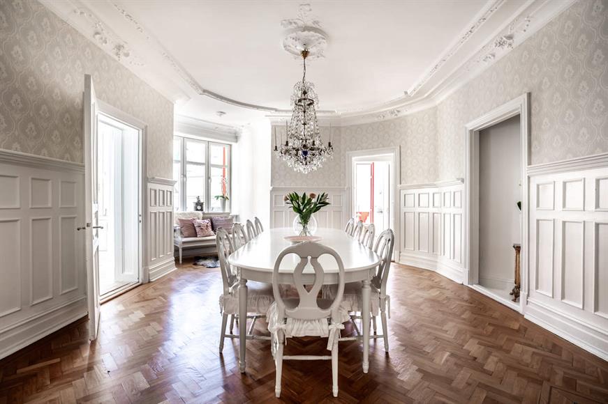 For English please see further below.Sekelskiftesvåning anno 1905 på anrik adress. Ett toppläge med hela stadens utbud utanför porten. 122 kvm elegans med, Magnifik takhöjd ( 3m) , 3 kakelugnar (ej i bruk), stuckaturer, takrosetter, pardörrar och bröstpanel. Vackra listverk, brädgolv och fiskbensparkett. Mysig gårdsbalkong och höga fönster i öst och väst. Tillgång tilll övernattningsrum, festlokal, bastu med relaxavdelning samt takterrass!Lägenheten är ljus och festlig med en stor matsal och sociala ytor. Köket är funktionellt och välutrustat med pigkammare och balkongen med utsikt mot gården perfekt för frukost i solen. Nyrenoverat och relinat badrum med tvättpelare samt golvvärme. Läget i kungshöjd innebär att det är nära till allt och ändå lugnt. En kollosalt vacker våning om 4.5 rok med allt man kan önska med två tilltagna sovrum.Imagine yourself in this spectacular apartment built 1905 ( Princess Margaret of Connaught marries Prince Gustaf Adolf of Sweden, Duke of Skåne (Gustaf VI Adolf of Sweden)). In a unique location with the whole Gothenburg city just outside your door. Access to bars, best restaurants in town in Magasinsgatan, shopping and gyms. 122 sqm with high ceiling of 3 meters and 3 chimneys from 1905. A spacious dining room with grape leaves structured in the high ceiling above your head. Cozy balcony with morning sun for your romantic breakfasts. Accessibility to the party floor with sauna and relaxing department and balcony with view over the whole Gothenburg.The apartment is one of the biggest in the area , it is spacious and light with great space for dining with friends and family. Kitchen has all you need. Newly renovated bathroom, with floor warming function and two sink just prefect for a busy couple. 4,5 room from which 2 can be used as bedrooms.See film below for further details/ Kolla på filmen nedan för detaljer:https://youtu.be/Nhy_B8QCAGASpecial features:Svenska: Bastu och festvåning samt balkong som har utsikt över stora delar av Götebor. Grillplats i en mysig grönskande gård. Kakelugnar från 1905 i sektakulära rum med högt till tak. En historisk och speciell känsla av att bo i ett klassiskt sekelskifteshus i centrala Göteborg och ändå på en lugn avslapnad gata.English: Sauna and party floor with balcony view to all over Göteborg. Grill place in a cozy small yard. Chimneys from 1905 with charming rooms with high ceilings. A touch of history and a special feeling of living the old style in most central part of Göteborg city , yet at a very calm street.Transportation: Svenska: Hållplatserna Domkyrkan och Grönsakstorget finns på bara 1-2 minuters gångavstånd med många buss och spårvagnsalternativ. Till Göteborgs centralstation tar man sig på 15 min och Stenpiren med färja över till Lindholmen är 5 minuter bort.English:Domkyrkan & Grönsakstorget bus & tram stops are just 1-2 mins walk away. For train it is only about 15 min walk to Gothenburg central station. Further the ferry stop Stenpiren is 5 min away with free ferries to Lindholmen.About the building: Svenska: Tillgång till bastu och balking, grillplats och gård samt cykel och möjlighet till bilparkering utanför på gatan.English: Access to Sauna, balcony, grill place, yard, bike parking & car parking.Housing associationBRF Höjdena