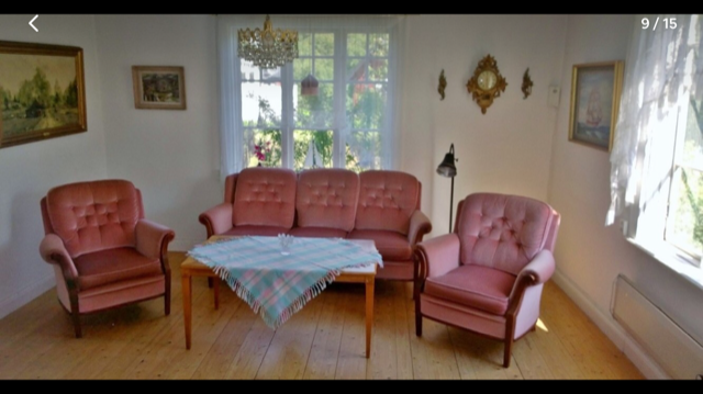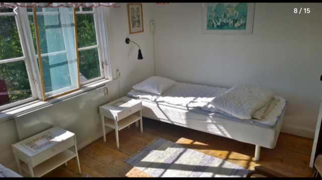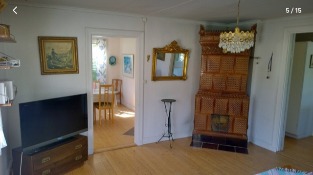 Övervåningen: 3 sovrum, 2 sovalkover på 4 kvm med enkelsängar, kök från 30-talet(används ej) samt en charmig Punchveranda.