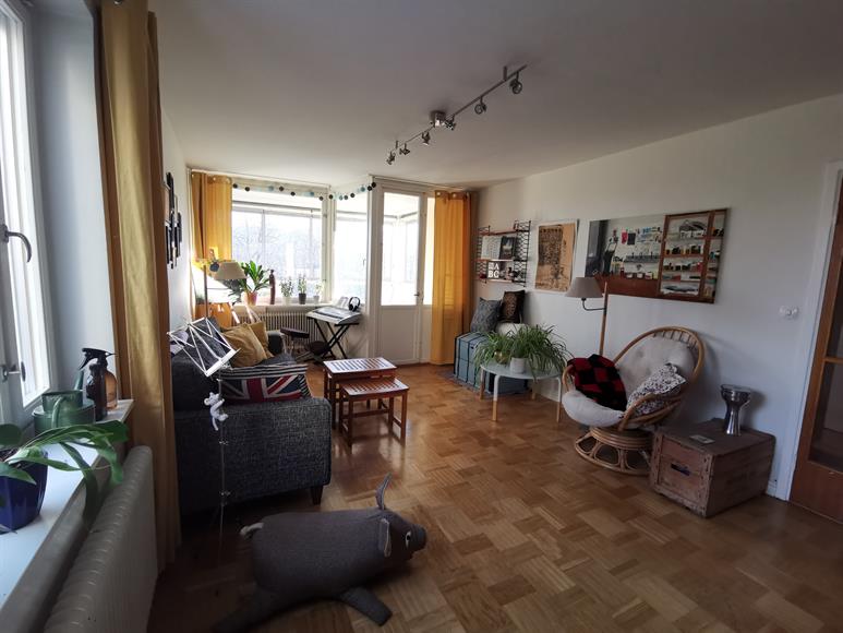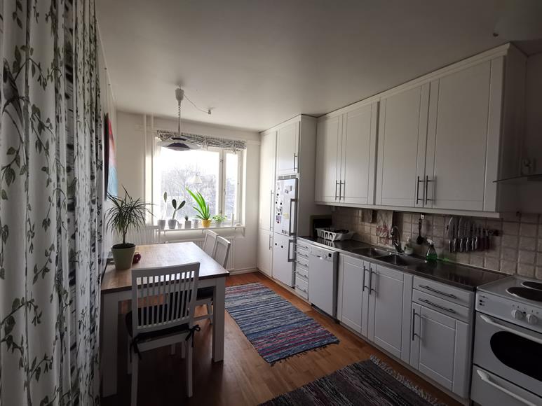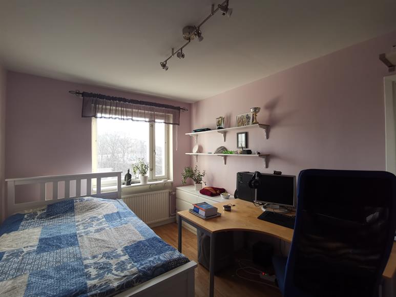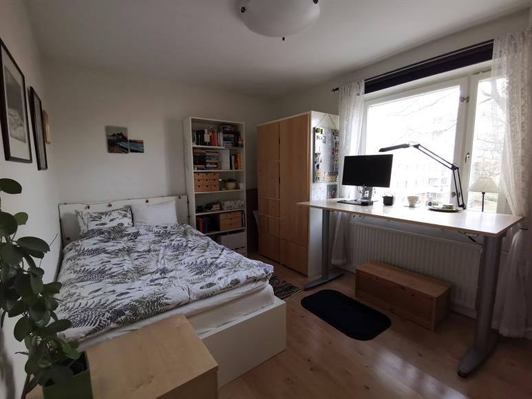 Hej du som söker bostad!Rummet och lägenhetenJag ska på utbyte i några månader och söker dig som vill bo i mitt rum från mitten av mars till och med juli. Du kommer bo i mitt fullt möblerade rum (12 m2). I lägenheten bor också min bror (20) och ni delar på lägenheten (75 m2). Lägenheten är på våning två och är fräsch, ljus och rymlig. I badrummet finns dusch, badkar och tvättmaskin. Torkställning finns och kan ställas på balkongen eller i vardagsrummet. Det finns också tvättstuga med torktumlare i Bostadsrättsföreningen. Köket är fullt utrustat och har diskmaskin. Det finns en stort vardasrum och en stor inglasad balkong. Alla rum känns rymliga och ljusa. Det finns källarförråd och cykelgarage.LägeLäget är perfekt, två minuter till Bergshamra tunnelbanestation som tar dig in till stan och Centralstationen på 15 min, och till Universitet och KTH på några minuter. Du cyklar till stan på 30 min. Ica ligger två minuter bort till fots, Coop 10 min och Lidl 15 min. I Bergshamra centrum (10 min till fots) finns restauranger, bibliotek, apotek och vårdcentral.Din flatmateMin bror Valter läser maskinteknik på KTH på heltid. Han pluggar mycket och är med i KTH:s spexorkester. Han tycker det är trevligt att ses i köket ibland och äta tillsammans eller spela ett brädspel. Det går fint att vara social och det går minst lika bra att dra sig undan och vara privat, det respekteras! Det finns ett städschema som man håller sig till så gott man kan. Du som hyr är rökfri och har inga fester hemma.Vi ser fram emot att få prata lite närmare!Elsa och Valter
