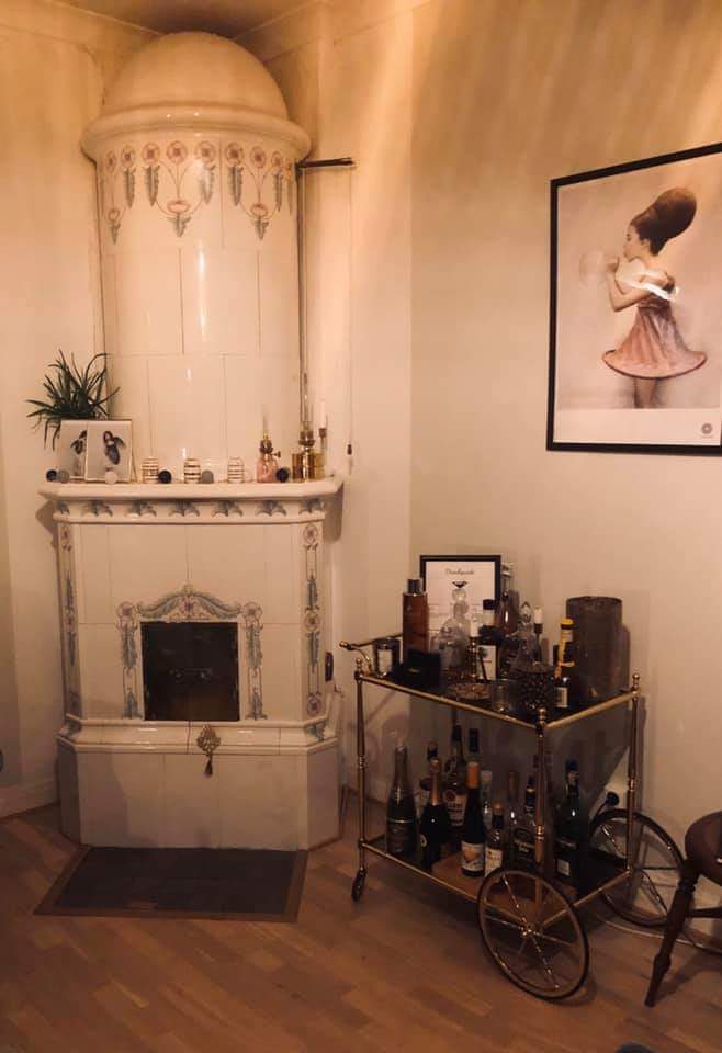 Luftig och ljus lägenhet på nedre botten i 20-tals villa, bara några meter från havet. och båtplats. Lägenheten har fungerande kakelugn, bevarade orginaldetajler och vackra spegeldörrar.