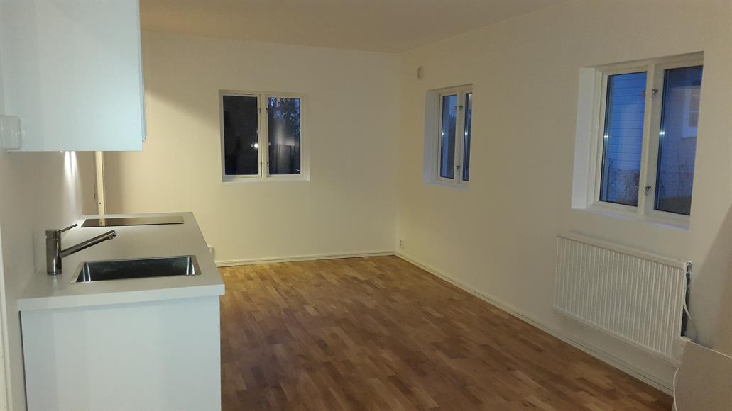 Lägenheten med tillgång till grönskande trädgård hyrs ut tillsvidare. Lägenheten har egen ingång och är helt avskiljd från den villa den ligger i anslutning till. Lägenheten har ett rum och köksdel. Badrum med dusch och tvättmaskin. Hyresgästen har tillgång till trädgården utanför.