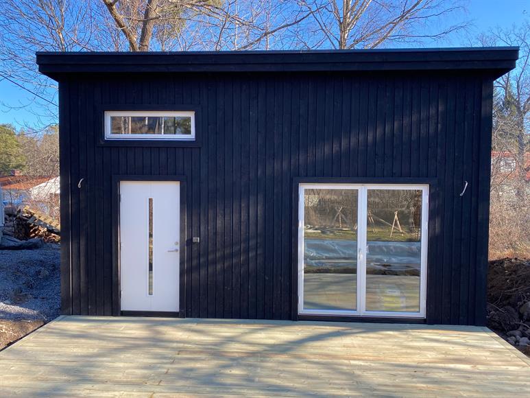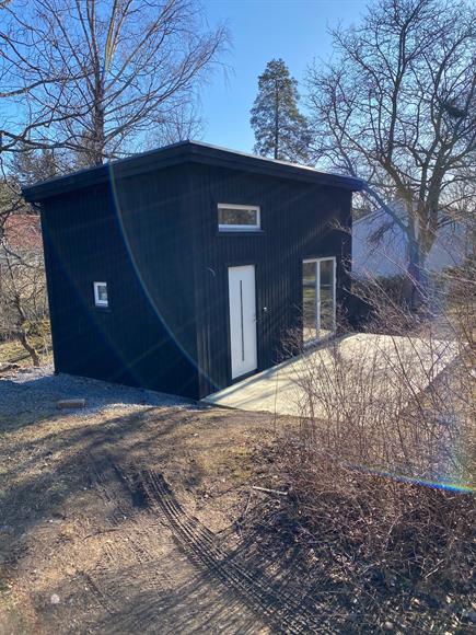 Nybyggt attefallshus (med loft) med egen parkering ca 10 m från huset.3 min till busshållplats (buss 421/441 till Slussen). 2 min till badplats (Sågsjön)- Fullt utrustat badrum inkl tvättmaskin- Fullt utrustat kök exkl diskmaskin- Ca 200 kvm "egen" tomt- Ca 20 kvm egen altan- Staket/plank avskiljer insyn mellan husen
