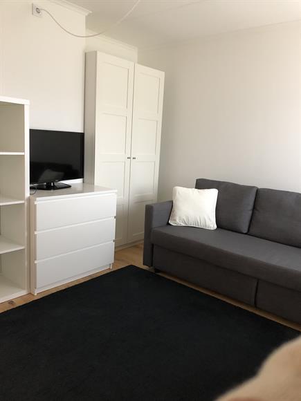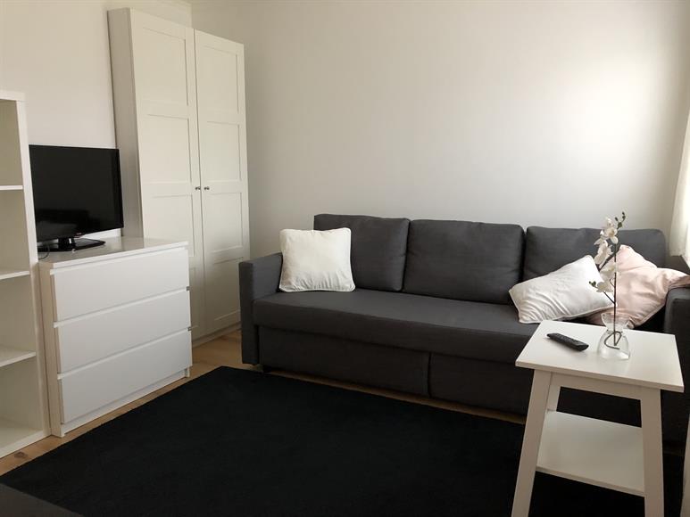 Mysig liten lägenhet i lugnt område. Helt separat lägenhet. Rum med bäddsoffa, bord o mycket förvaring. Kokvrå med induktionshäll, ugn, fläkt, kul. Badrum med dusch o helt ny tvättmaskin. Kort promenad (8 min) till Norrvikenstatiln, 17 min till Odenplan. Ica o restauranger vid stationen. Nära natur i badsjö.