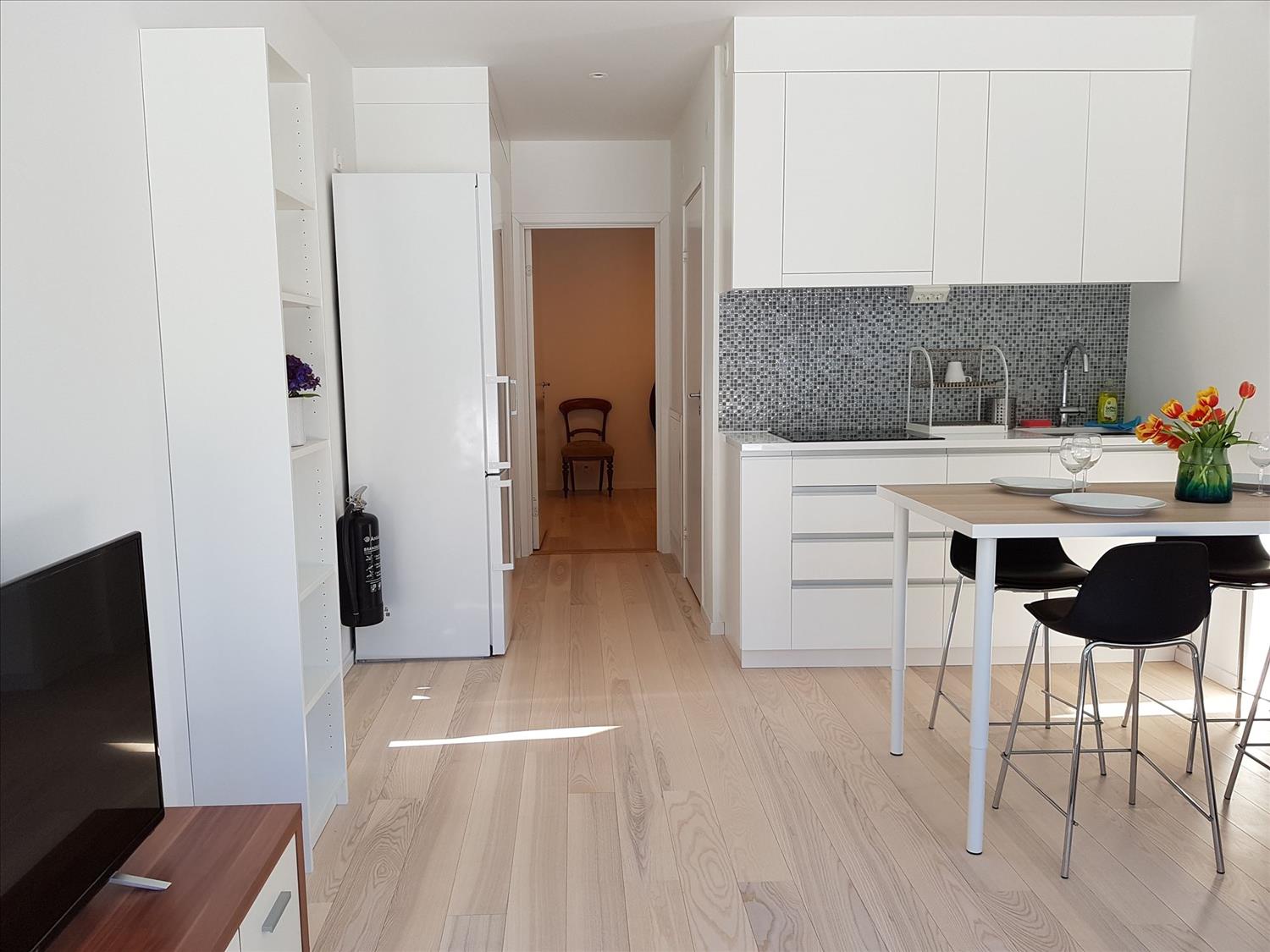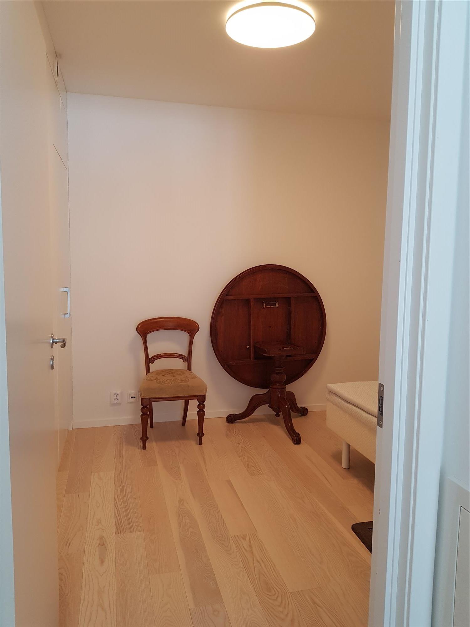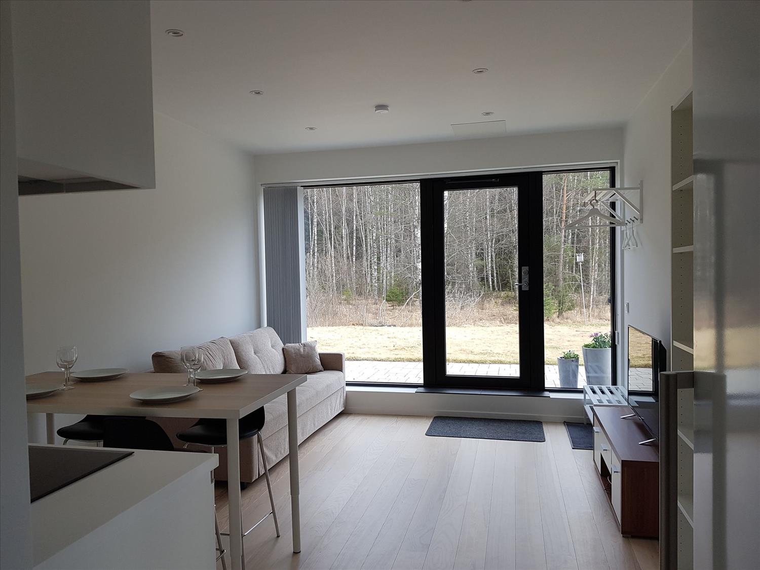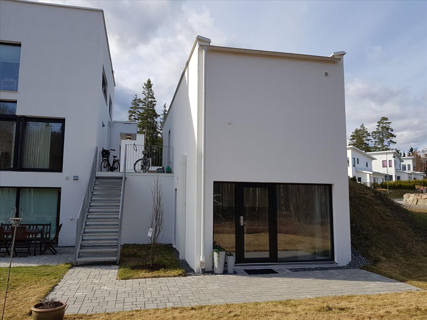 Väldigt fräsch, exklusiv och unik 2:a i Åkersberga! Putsad funkisstil i ett nytt lugnt villaområde angränsande till Trastsjöskogen. Golvvärme i hela lägenheten. Fantastisk utsikt till skogen genom helglasat väggparti, där rådjur och älg syns till ibland. Sovrum och allrum med modern köksdel på totalt 34 kvm. Badrum med dusch, Modern tvättmaskin med inbyggd torktumlare i ett. Köksdel: Kylskåp och frys, mikrovågsugn, varmluftsugn och spishäll med induktion. Full köksutrustning, bord i barhöjd med 4 stolar. Allrumsdel: Bäddsoffa för gäster, 40 tums TV, tv bänk, hatt- och skohylla, bokhylla, lammellgardiner mörkläggande som kan vinklas för flexibelt ljusinsläpp. Sovrum i souterräng: Dubbelsäng Continental från Mio och sängbord. Många väggfasta garderober och skåp för kläder och annan förvaring. Egen postlåda med nyckel och egen ogenerad uteplats som vätter mot skogen. En promenad till busstation (Storvreten alternativt Högbackavägen ca 8 minuter) och ca 20 minuters promenad eller 5 min cykel till Åkersberga centrum. Granne med Trästsjöskogens naturområde och cykelavstånd till havet. Ett unikt boende för den som uppskattar lugn, skog, fåglar, och hög boendekomfort.