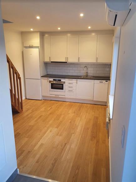 Minivilla på 42kvm på entréplan ligger ett stilrent och helkaklat badrum med golvvärme. Badrummet är utrustade med WC, dusch och kombinerad tvättmaskin/torktumlare. Köket välplanerad för ett stort matsalsbord. En trappa upp hittar du vardagsrum och sovrum. Från vardagsrummet blickar du ut mot husets altan och egen trädgårdsplats. Framför huset har du plats för 2 till 3 bilar. Kommunikationer buss från Ågestavägen mot både Huddinge sjukhus och Farsta strand.Högmora är fritidshusområde nära till naturen nära även centrala Huddinge och Farsta.