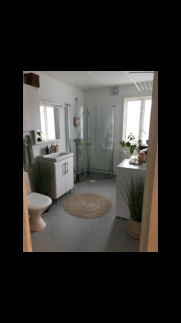 Rymligt badrum med dusch o tvättmaskin