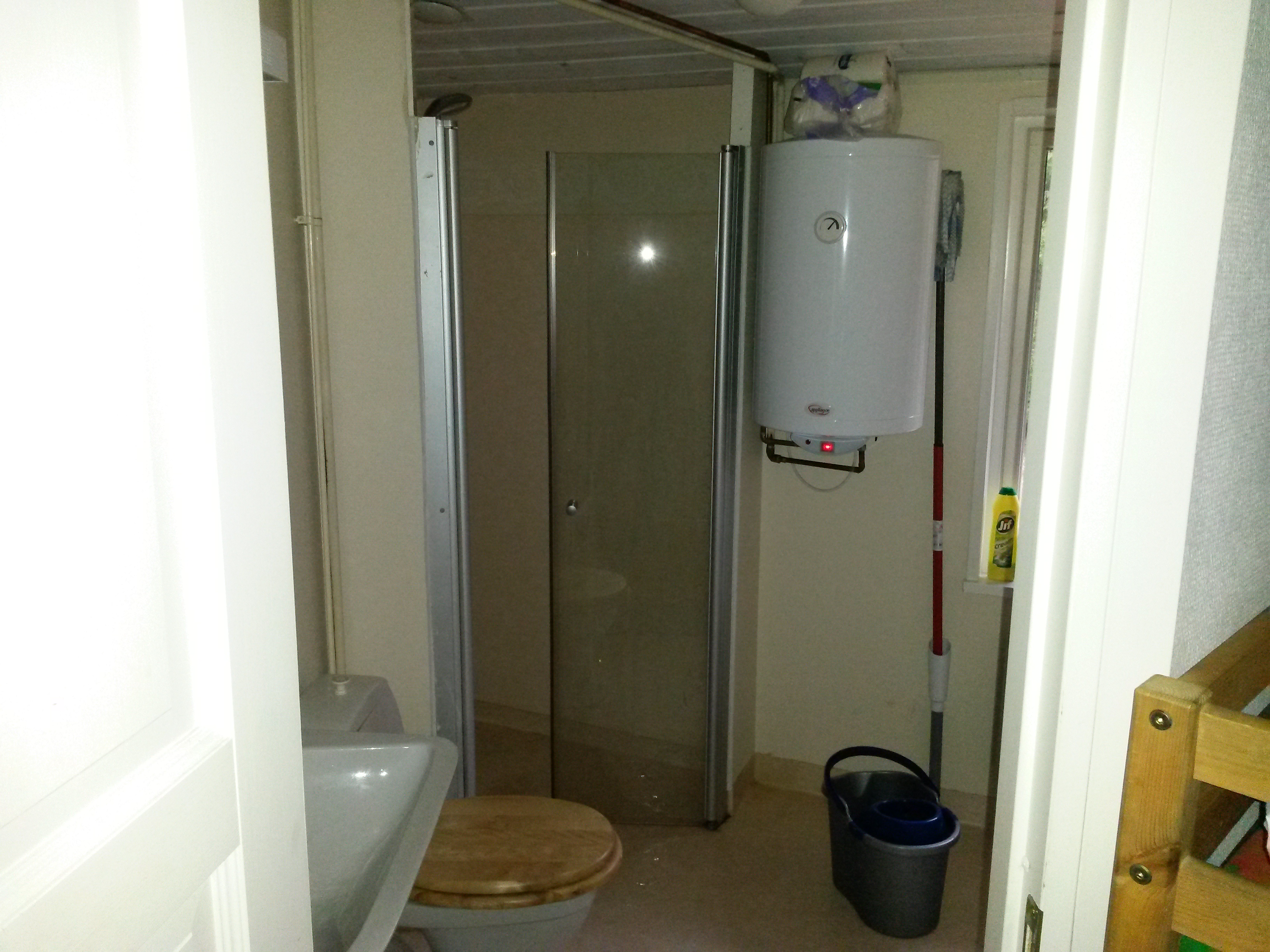 – Dusch och toalett, förberedelse för tvättmaskin finns