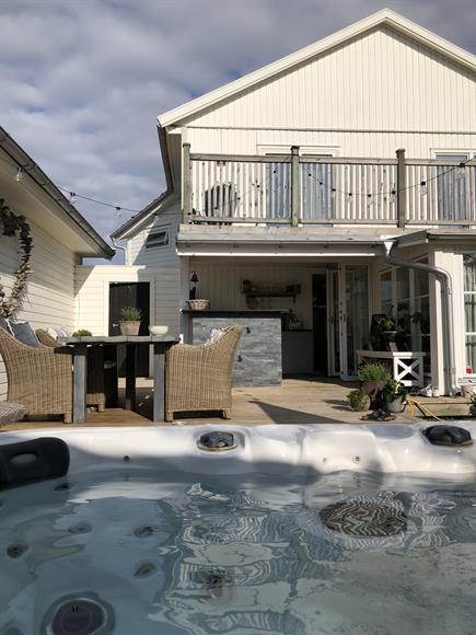 Renoverad villa med öppen planlösning. Stort socialt kök med köksö i anslutning till matplats och vardags rum. Tre stora sovrum och en nyrenoverad toalett med dusch. Stor balkong, terass med ett uterum, utekök/bar samt jacuzzi Inhägnad trädgårdPromenad avstånd till havetNärhet till affärer, skolor mm