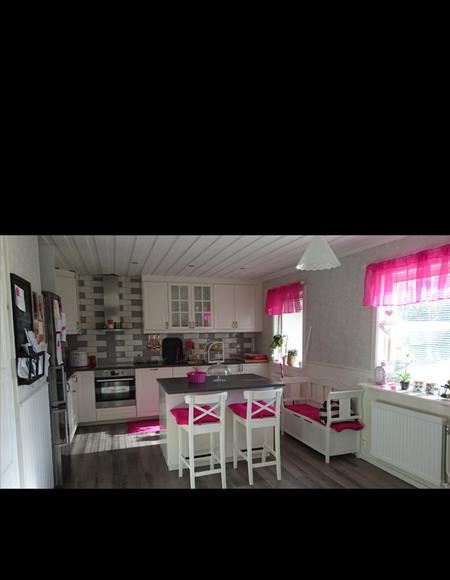 Fin familjevänlig villa i lugnt område!.Nytt kök, nya PVC-fönster. Ny bastu. Helrenoverade badrum och toalett , ny tvättmaskin och torktumlare. Ny pelletsvärmare. Nya golv. Och en ny stor terrass ovanför garaget. Nära till Innanbäcken Skolan och Prisman Förskolan. Stor trädgård. Med gungor och ett litet hus.