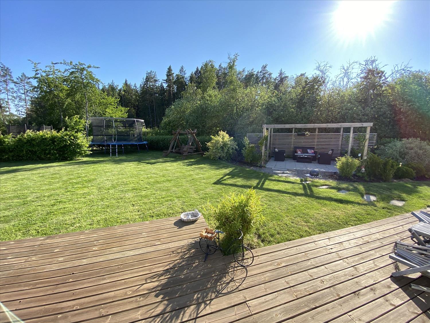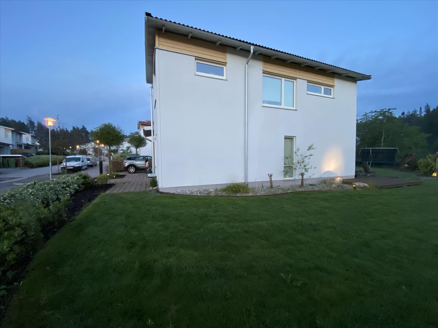 Premiumvilla med tomt i söderläge, 157 kvm boarea, ca 34 meter biarea ,856 kvm tomt, ca 230 kv Altan, byggnadsår 2013, energisnål, 3 glasfönster. Sittplats/uteplats både på framsida och baksida av huset. Parkeringsplats för 2 bilar med 1 carport. Belysning runt hela huset och en trädgård som är ritad av en expert trädgårdsArchitekt
