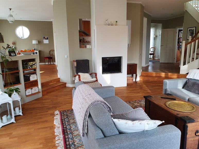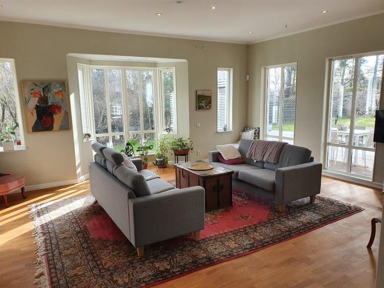 Fristående Villa från 2001 med ca 1300 m2 tomt i Tyresö Strand i nära anslutning till såväl grönområden som Erstavikens stränder. Ca 500m till skola och förskola. Direktbuss till Stockholm C tar ca 30 min.