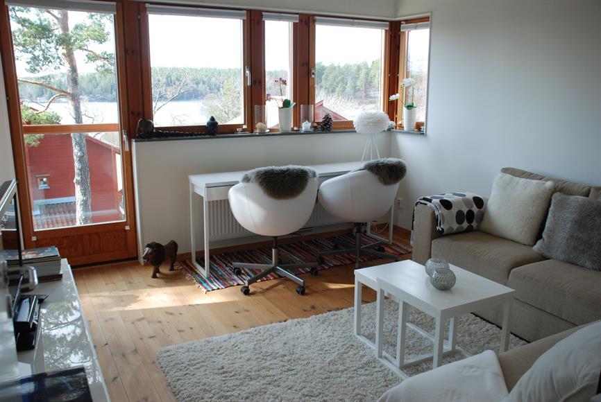 Ljuvligt boende på Kullön, i skärgårdens huvudstad Vaxholm, med huvudstaden Stockholm inom räckhåll! Villan är 168kvm i två plan med tre altaner i olika väderstreck och sjöutsikt mot småbåtshamnen. Entréplan bjuder öppen planlösning för kök och vardagsrum med braskamin samt badrum med badkar. Från köket kan du öppna dubbla glasdörrar ut mot en altan i SO och njuta av inne och ute samtidigt. Ytterligare altan i bästa sydvästläge med utsikt mot småbåtsbryggan. Utöver umgängesytor i entréplan finns tvättstuga med tvättmaskin och torktumlare samt groventré. På övervåningen ligger fyra sovrum, badrum med bastu och ordentligt med garderober. Till huset hör också en lättskött naturtomt, en carport samt ytterligare parkeringsplats. Kullön är ett pittoreskt och fantastiskt rofyllt område. Utöver badplats med både brygga och strand har Kullön ett mycket fint naturreservat med fina klippor, grillplatser och stigar för rekreation. Till Stockholm City är det ca 3 mil och tar ca 30 min med bil, alt 35 min med buss, eller så kan du ta färjan från Vaxholm och nå city på ca 1 tim. Tunnelbanenätet når du genom att ta bussen till Danderyd, vilket tar 23 min. Vi har båda alltid pendlat från Vaxholm till våra jobb och det är värt varje minut att få komma hem till denna ljuvliga miljö.Halvvägs in till Vaxholm ligger Eriksö, ett riktigt härligt rekreationsområde. Här finns ett 2km spår för promenader eller löpning samt badplats, kanot- och cykeluthyrning, minigolf, frisbee-golf samt en höghöjdsbana. På Bogesund, ca 5km härifrån, bjuds också många aktiviteter såsom golf (18-hålsbana), ridning, vandringsleder med olika sträckning, bad, café och slottsbesök.