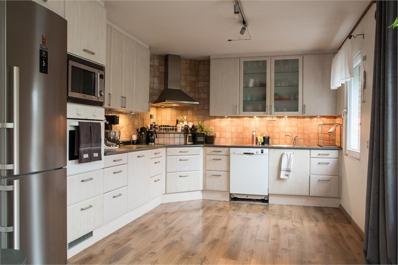 Fyra sovrum, rymligt kök, två allrum, tre toaletter med vattenburen golvvärme och ett duschrum med badkar.