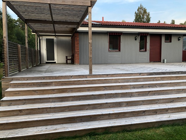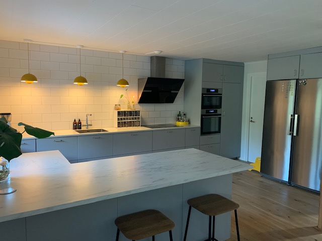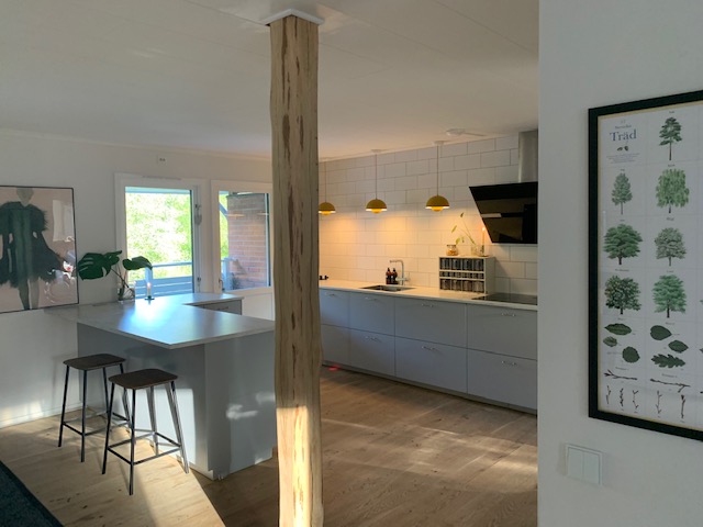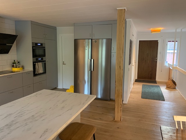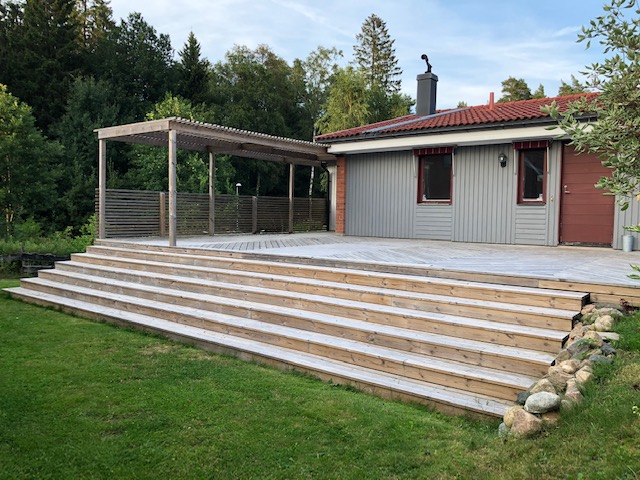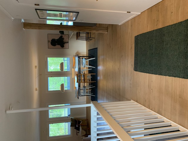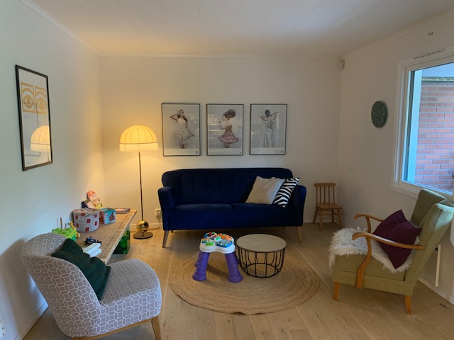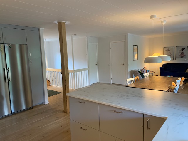 Nu ska vi hyra ut vårt hus i Älmhult. Huset ligger 15 minuters promenad från centrum och 10 minuters promenad från Bökhults badplats. Huset, som är ett sutteränghus, är nyrenoverat och på entréplan ligger två badrum, ett med bastu och utgång till ett tralldäck, ett sovrum, kök och allrum i öppen planlösning. På övre plan finns även en tvättstuga och utgång till en stor balkong mot baksidan av tomten. På nedre våningen finns en walk-in-closet, ett sovrum, ett större rum med kamin där vi har haft sovrum och lekrum för barnen. Huset ligger på en hörntomt med skog åt två sidor. På framsidan av huset finns ett stort tralldäck med en pergola och på baksidan finns ett inglasat uterum. På tomten finns även ett mindre trädgårdsland och ett växthus.