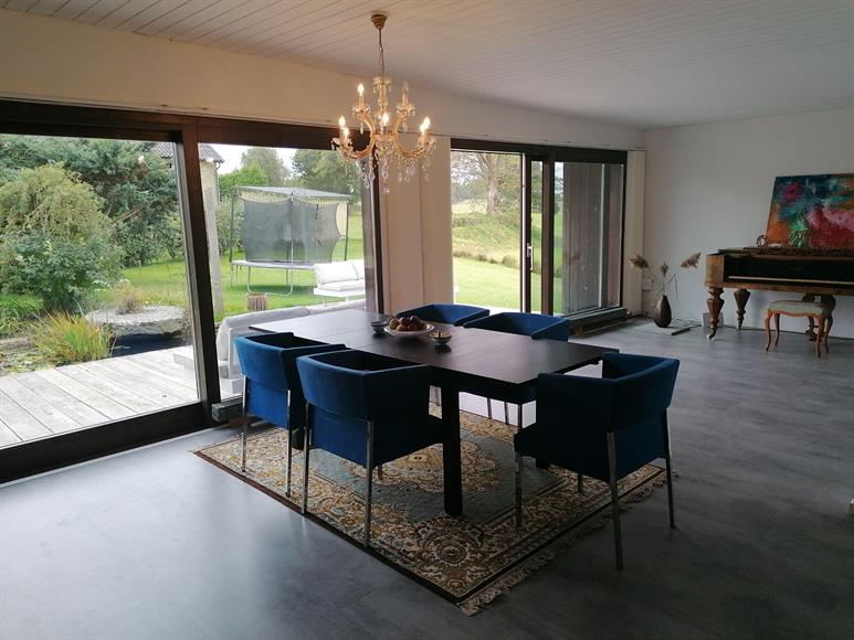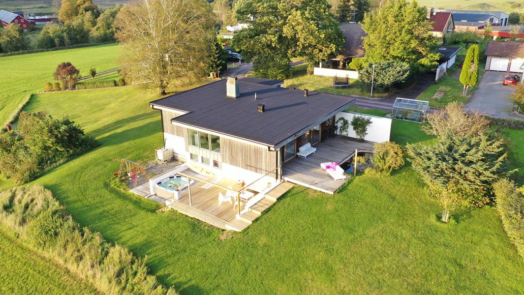 Lev lyxigt på landet! Modernt renoverad arkitektritad funkisvilla uthyres! Huset är ett suterränghus i två våningar om 110kvm vardera.Entrévåning:Rymlig hall med goda förvaringsmöjligheter. Öppen och rymlig planlösning med oslagbar panoramautsikt året om. Orginalköket i jakaranda gör det unikt av sitt slag med moderna vitvaror och köksmaskiner. Sällskapsytor och matplats i ett. Påkostad hifi-anläggning förvandlar musiken till levande konserter. Två skjutdörrspartier i glas ut mot den rymliga altanen i väst. Nyrenoverad gästtoalett i marmor ger ett lyxigt intryck. Stort master bedroom som har en walk in closet och eget nyrenoverat badrum med golvvärme. Det finns även ytterligare ett sovrum med två bäddar och utsikt i söderläge. Nedervåning:Loungen på nedervåningen har en stor inglasad öppen spis som värmer gott om mysiga höst- och vinterkvällar. Ett hemmagym med fria vikter, boxningssäck och ytterligare utrustning gör träningen fulländad. Hemmabio med Dolby Atmos ljud och 104 tums projektorduk gör film-, fotbolls-, och tv-spelskvällar så ultimata de bara kan bli. Gästrummet på nedervåningen har egen entré och är avskilt från övriga huset, vilket gör rummet optimalt för tonåringar eller tillfälliga övernattningsgäster. Matkällaren kan användas som ett välbehövligt förråd, så väl för matlagring som för lätt kylning av dryck. I huset ingår även tvättrum med gott om plats för att hänga tvätt. Det finns även ett garage med plats för en bil och diverse användbara verktyg för hus och trädgård. Tomt:Stor gräsmatta på ca.2100kvm, med ett växthus (6kvm), odlingsland och möjlighet att utöka om man önskar det. Robotgräsklipparen frigör mer tid, till andra intressen. Det finns två stora altaner, en i väst- och en söderläge, där även spabadet är placerat. Area: 110 + 110 (inkl. garage och biarea) Antal sovrum: 3 st (6 bäddar med plats för fler)Uppvärmning: Luft/vattenvärmepumpTillträde: Enligt överenskommelse.Avstånd (min med bil) Mindre mataffär: 2minStörre matbutik: 10min Skola/förskola: 4minHögstadie: 10minGymnasie: 13minSkene: 10minKinna: 15minE6 Fjärås: 25minGbg (Kallebäck): 35minLandvetter flygplats: 25minKba: 30minVarberg: 45minBorås: 35min