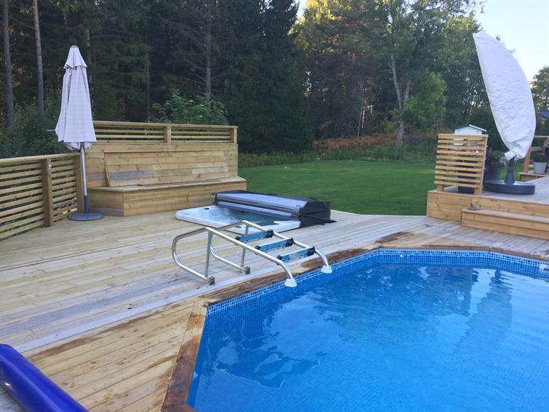 Welcome to rent this spacious house in a quiet neighborhood close to nature. This house is great for families who enjoy outdoor living in a calm environment.House features twin garage, pool, jacuzzi, a huge deck, sandbox, playhouse and swings, and more!House size 200 sqm.Plot size 1500 sqm.GROUND FLOORGround floor consists of a large open area with kitchen, dining area and living room combined. It also has 2 bedrooms, bathroom and laundry room.All hardwood floors and walls painted in 2018 in calm warm grey/green/white colors.HallwaySpacious hallway with built in sliding doors closet.KitchenKitchen has white cupboards and black countertop and tiling.Kitchen appliances from 2017-2019. Full fridge and full freezer, microwave, owen and induction stove.Tap from Grohe Blue with filtered chilled sparkling water directly from the tap.A large island where 4 people easily can sit for breakfast.Dining areawith large oak wood table that can fit 10 people.Living RoomLight living room with lots of windows facing the forest and access to the back yard wooden deck.Cozy sofas and 65" LG 4K LED TV + Sonos Soundsystem.Bedroom 1First bedroom on the ground floor is currently used as a walk in closet.Bedroom 2Second bedroom on the ground floor currently fitted with home cinema 5.1 sound system and a 104" screen and projector.Laundry RoomIncludes washer from 2020, tumble dryer, and a drying cabinet. Access to garden.Bathroom 1Ground floor bathroom with toilet and shower, furniture upgraded 2020. White tiling on the walls and grey tile floor.SECOND FLOORWhen you reach the second floor, there's a social area with a sofa and a 55" Samsung HDTV + playstation.From this room you can access all the bedrooms on the second floor.Bedroom 3Bedroom with grey walls, fits a 180 cm twin bed.Bedroom 4Bedroom with grey walls (kids room).Bedroom 5Bedroom with walk in closet and window facing the forest.Bedroom 6Bedroom with pink/white walls and a walk in closet.Bathroom 2Large bathroom on the second floor with toilet, twin basin and bathtub. Grey tiled floor and white tiling on walls.OUTDOORS/GARDENTwin garage of 55 sqm with 2 remote operated garage doors.Lots of space to park up to 6 cars in front of the garage.Front side of the house has a lawn and some smaller trees.On the left side of the house there's a plum tree and a pear tree, plus red and black currant and blackberry bushes. Boxes for growing zucchini, strawberries and tomatoes.Back side of the house has a wooden deck connected to the pool deck. Deck size is approx. 150 sqm.Heated Pool from Folkpool 6 x 3 x 1.2 m plus jacuzzi for 6 people. The deck has a Weber grill and both dining table and lounge furniture plus a large umbrella for shade. Outside theres a large lawn with a toolshed, sandbox and a playhouse. The backyard is facing a beautiful forest with nice walking paths, and gives good privacy to the backyard.SAFETY/SECURITYBoth main entrance and garage has Yale Doorman lock (keyless) connected to Verisure burglar alarm with video surveillance and fire indication. You control the whole system of smart locks and alarm system through a smartphone app that allows you to lock, unlock, turn alarm on/off and so on from any location.House is also fitted with 4 Arlo Pro surveillance cameras for added security.